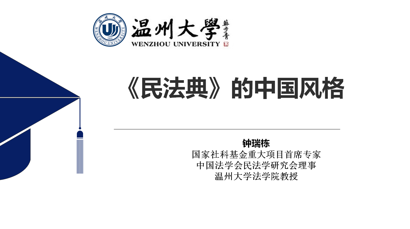钟瑞栋教授的解读以“《民法典》的中国风格”为主题。首先,钟教授引用习近平总书记的论断阐释了我国《民法典》在“推进全面依法治国”、“发展社会主义市场经济”、“坚持以人民为中心”、“推进国家治理体系和治理能力现代化”四个方面的重要意义。其次,在《民法典》的内容方面,钟教授指出我国《民法典》通过总分结合的表达方式达致其体系化目标,总则编和六分编全面规定了民事主体的财产权利和人身权利,形成了一个完整的民事权利保护体系。第三,钟教授认为《民法典》的核心理念在于私法自治及其限制,在我国《民法典》规定的基本原则中,平等原则和自愿原则是私法自治理念的体现,而公平原则、诚信原则、公序良俗原则、绿色原则则体现了对私法自治的必要限制。此外,钟教授还对我国《民法典》的两处具体条款作了专门解读:其一是比照《物权法》第149条,钟教授解释了《民法典》第359条第1款的住宅建设用地使用权续期费用条款的立法变化及其原因;其二是对于《民法典》第1077条的离婚冷静期条款,钟教授认为这是对我国既有的协议离婚制度的补充,能够促使夫妻双方审慎对待婚姻家庭关系。最后,结合作为市政府重要工作内容之一的“两个健康”建设,钟教授谈到《民法典》以任意性规范为原则,强制性规范为例外的规制方式是我国社会主义市场经济健康发展的重要保障,政府部门应当兼顾严格执法与保护私权,以保证《民法典》有效实施为重要抓手推进法治政府建设,把《民法典》作为行政决策、行政管理、行政监督的重要标尺。总之,《民法典》的内容涵盖了民事主体“从摇篮到坟墓”的方方面面,而其语言又具有高度的专业性和抽象性,值得所有社会成员终生阅读、学习。