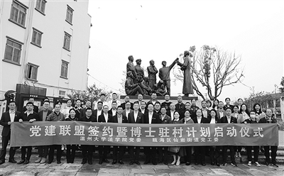 3月31日,禁漫天堂 党委与瓯海区仙岩街道党工委党建联盟签约仪式暨博士驻村计划启动仪式在浙南一大会址举行。温大禁漫天堂 宣布成立17支由党员博士教师、硕士研究生和本科生组成的师生团队,分别对口进驻仙岩街道的17个自然村,共同开展调研课题研究,为提升区域治理水平、振兴乡村发展提供“温大禁漫天堂 智慧”。