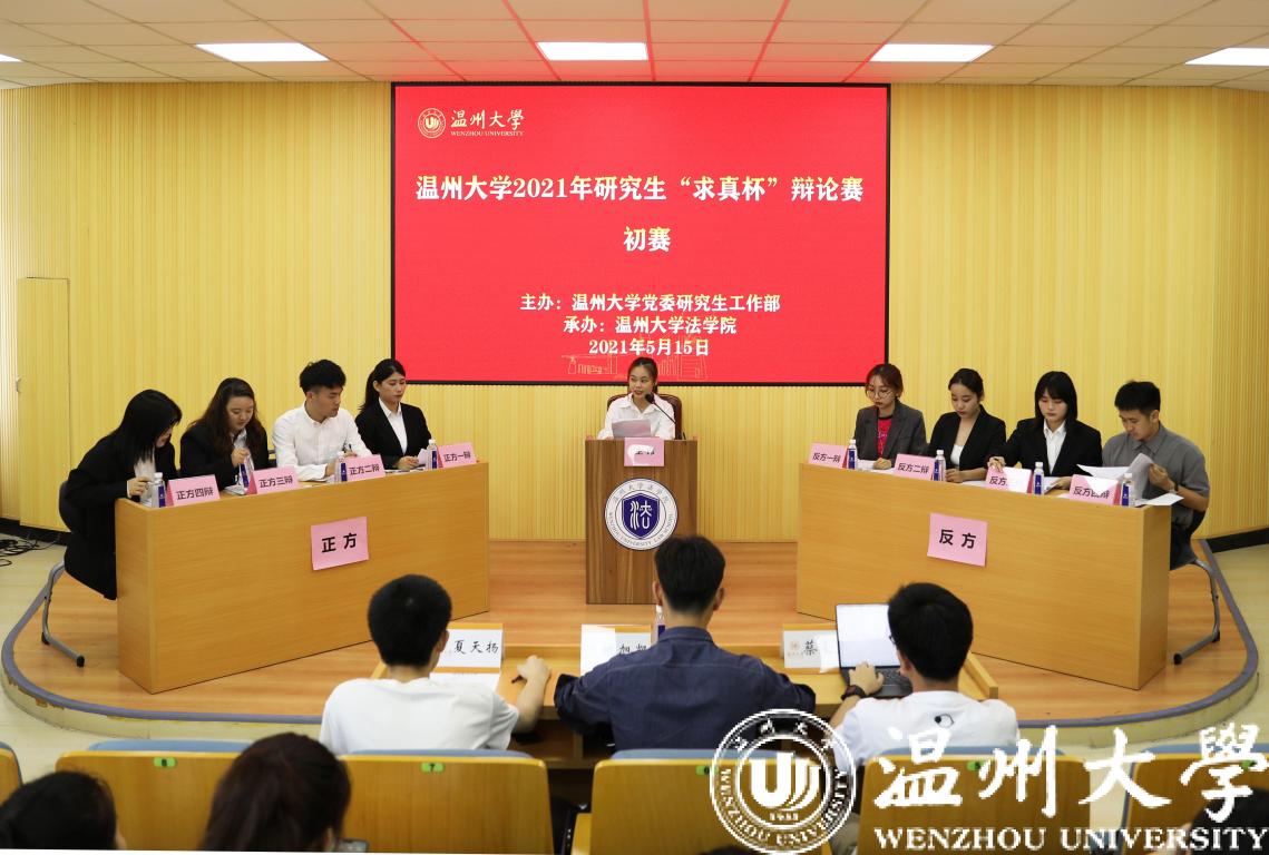 2021年5月15日、16日,由温州大学党委研究生工作部主办、禁漫天堂 承办的研究生“求真杯”辩论赛初赛成功举行。来自禁漫天堂 、机电工程学院、建筑工程学院、教师教育学院、美术与设计学院、电气与电子工程学院的6个代表队进行了激烈辩论,最后决出4支队伍晋级半决赛和决赛。温州大学研究生会办公室部长姚旭凯、温州大学辩论队前队长蔡豪杰、温州大学辩论队队长夏天扬、温州大学辩论队副队长陈棽昳、禁漫天堂 团委副书记鲁海佳担任本次比赛评委。