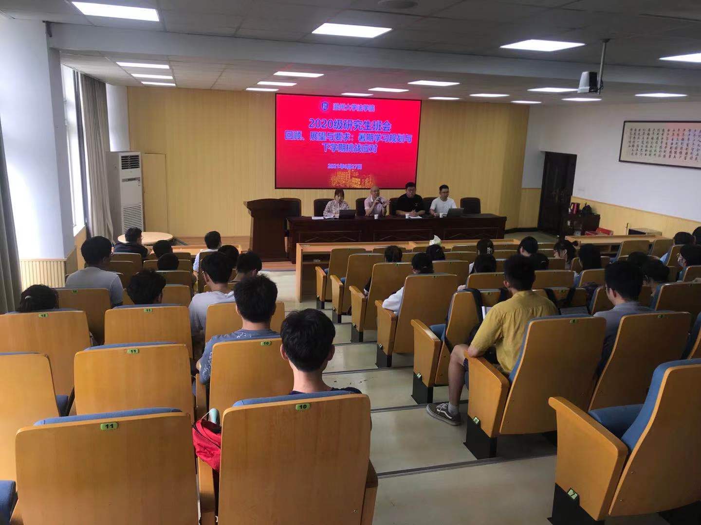 白驹过隙,时光荏苒,一年的研究生学习生活即将接近尾声。回顾过去,展望未来,为提高研究生科研热情、解答学习疑惑、明确假期学习规划和任务,并为下学期的科研学习挑战做好准备,我院2020级研究生于2021年6月27日在301教室举行了以 “回顾、展望与要求:暑期学习规划与下学期挑战应对”为主题的班会。禁漫天堂 院长王宗正教授,2020级硕士研究生班主任、硕士研究生导师任江副教授、2020级硕士研究生辅导员白昌科老师,教学与科研秘书胡亚玲老师,以及全体2020级硕士研究生参加班会,会议由胡亚玲老师主持。