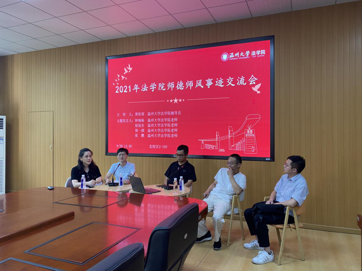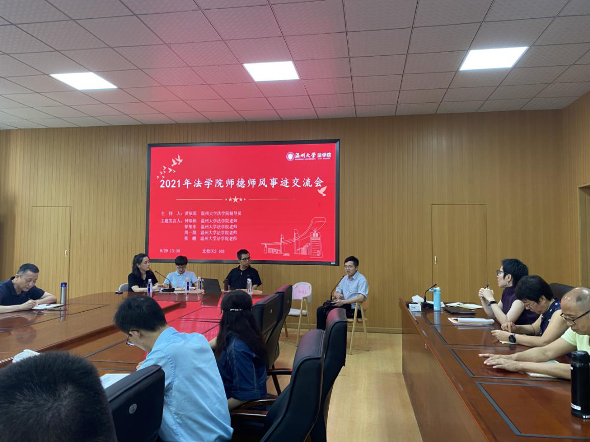9月29日下午,禁漫天堂 在北校区2号楼103会议室召开2021年学院师德师风事迹交流会。会议邀请钟瑞栋、徐旭东、周一颜、张鹏四位老师做师德师风事迹分享,辅导员黄依瑶主持会议,学院全体教工参加。