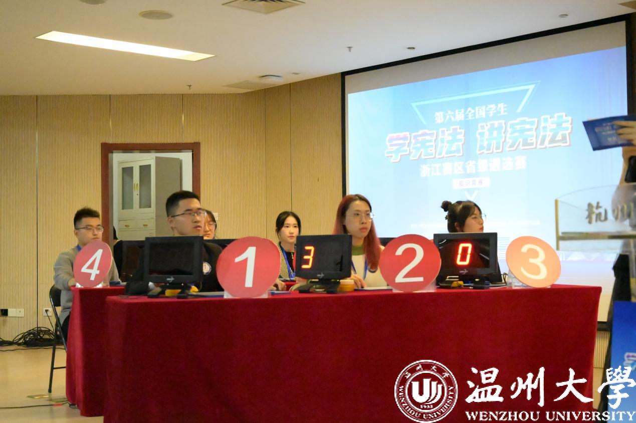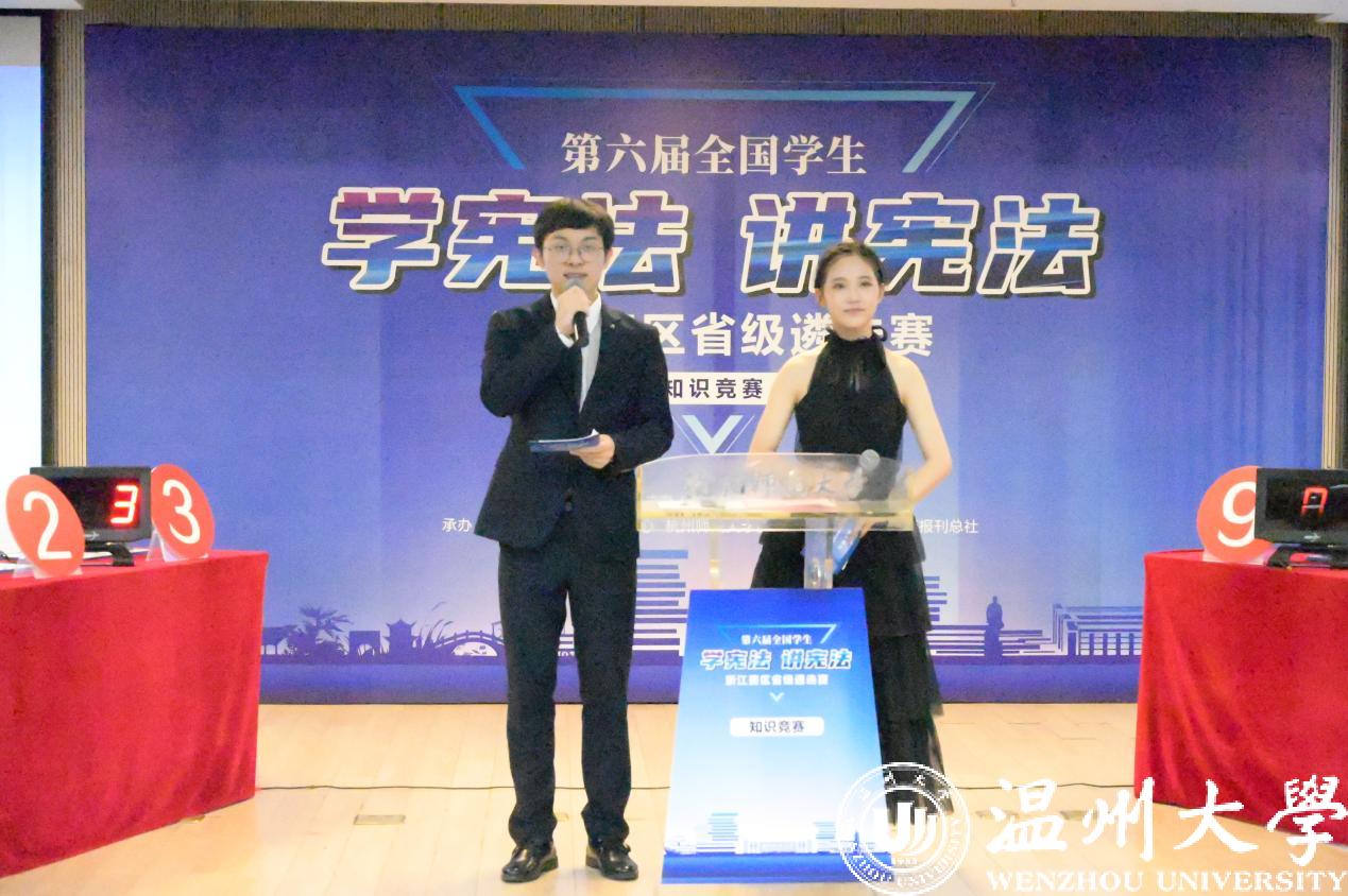 本次活动分为知识竞赛和个人演讲赛两个赛项。今年五月份至九月份,经过各地各校层层选拔,共有107名大中小学的佼佼者入围省级遴选赛。比赛分为小学、初中、高中、高校四个组别。来自我院19法学1班的姚雨欣同学作为温州大学代表前往杭州参加学宪法讲宪法知识竞赛省级遴选赛。