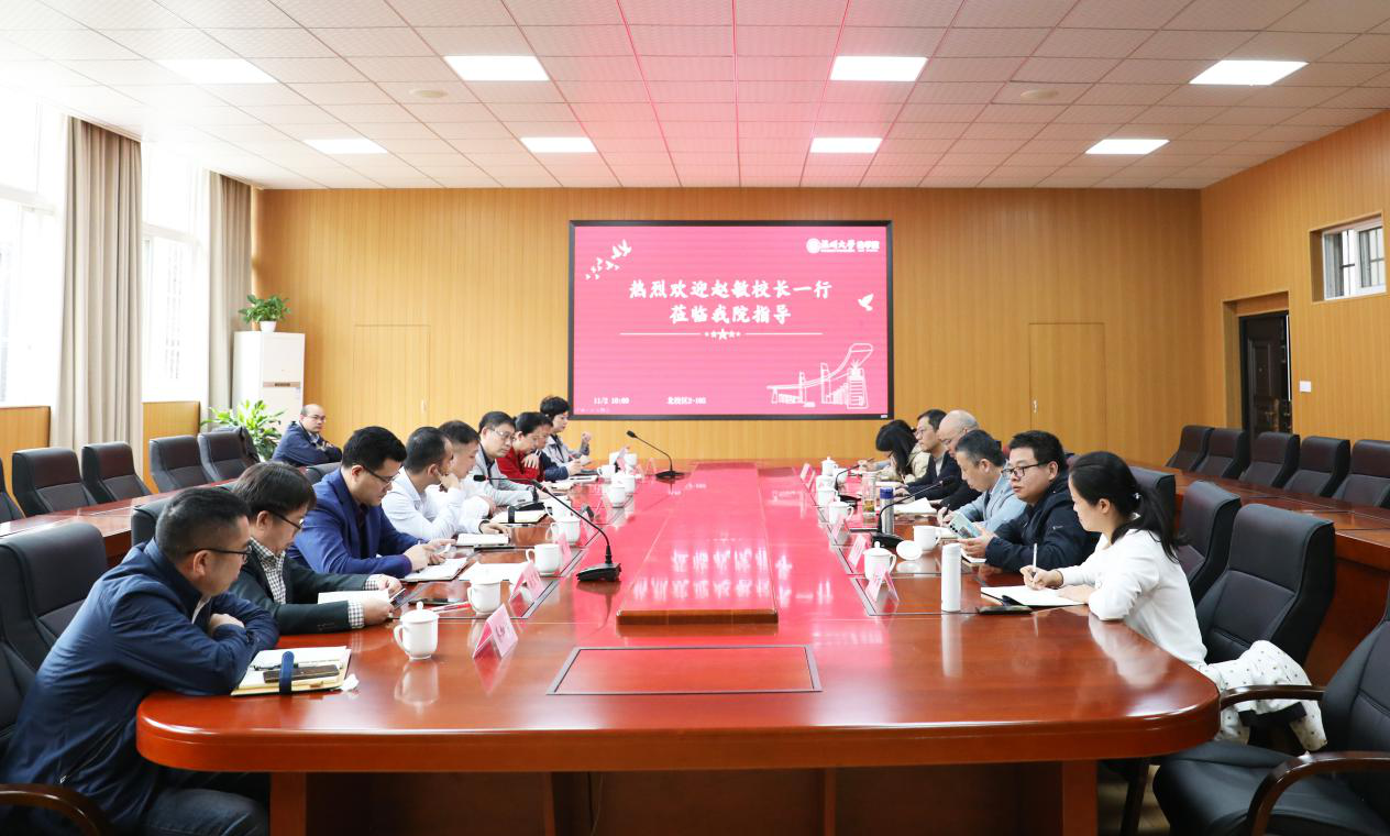 11月2日上午,赵敏校长莅临我院调研指导工作,党校办蔡联群主任、教务处罗建利处长、研究生院刘玉侠院长、人文社科处胡瑜处长、学工部张敏部长、人事处周宏明处长、国资处张若妤处长、后勤管理处蔡加依处长陪同调研,学院领导班子与各科室负责人出席会议。