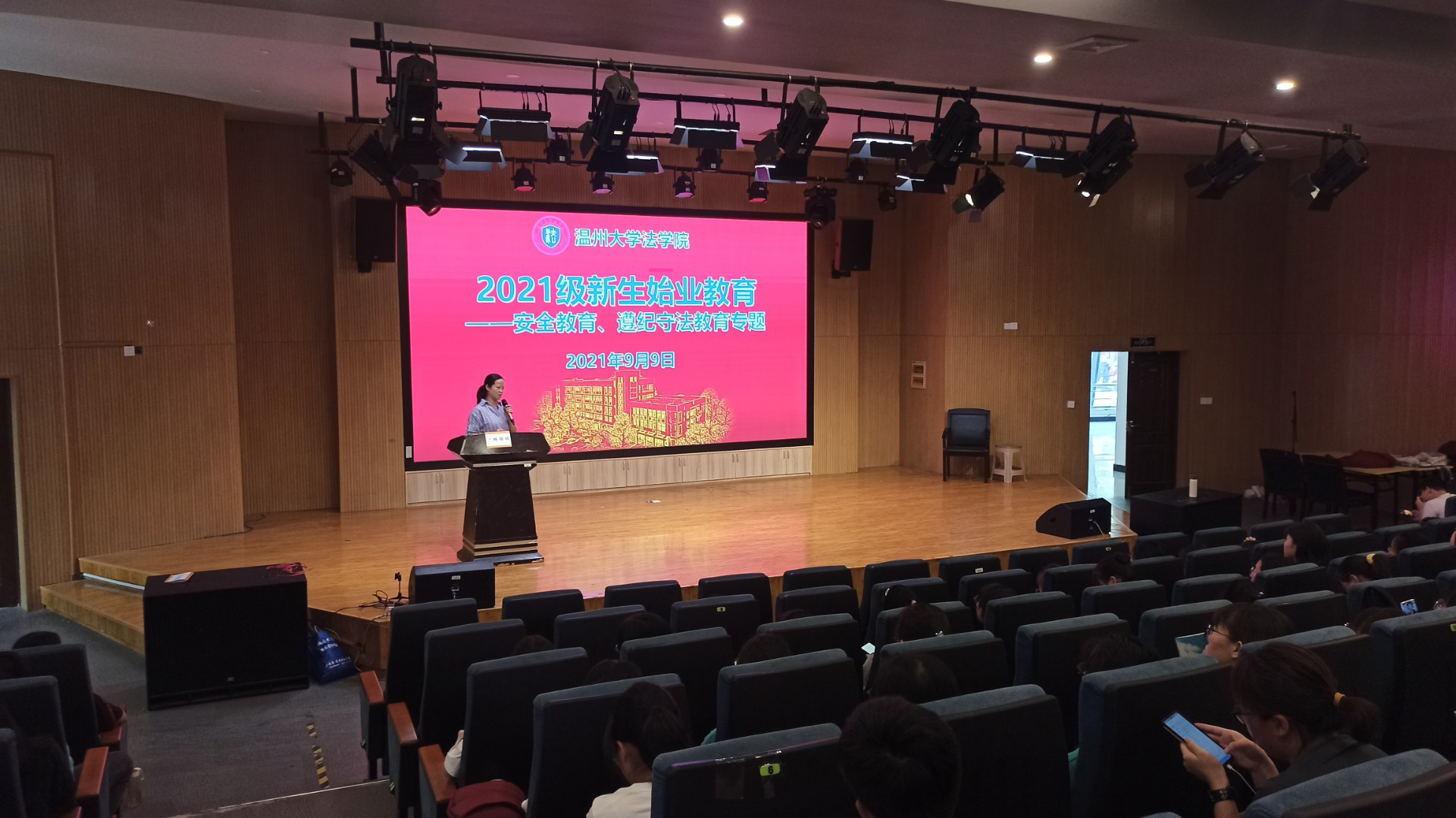 为了提高学生的遵纪守法意识、安全防范意识,学院开展安全教育活动。邀请温州大学保卫处高顺德老师给2021进行“以人为本,安全第一”专题禁漫天堂 ,由学院学工办主任林丽丽老师讲解《温州大学学生手册》中有关学生的管理规定。