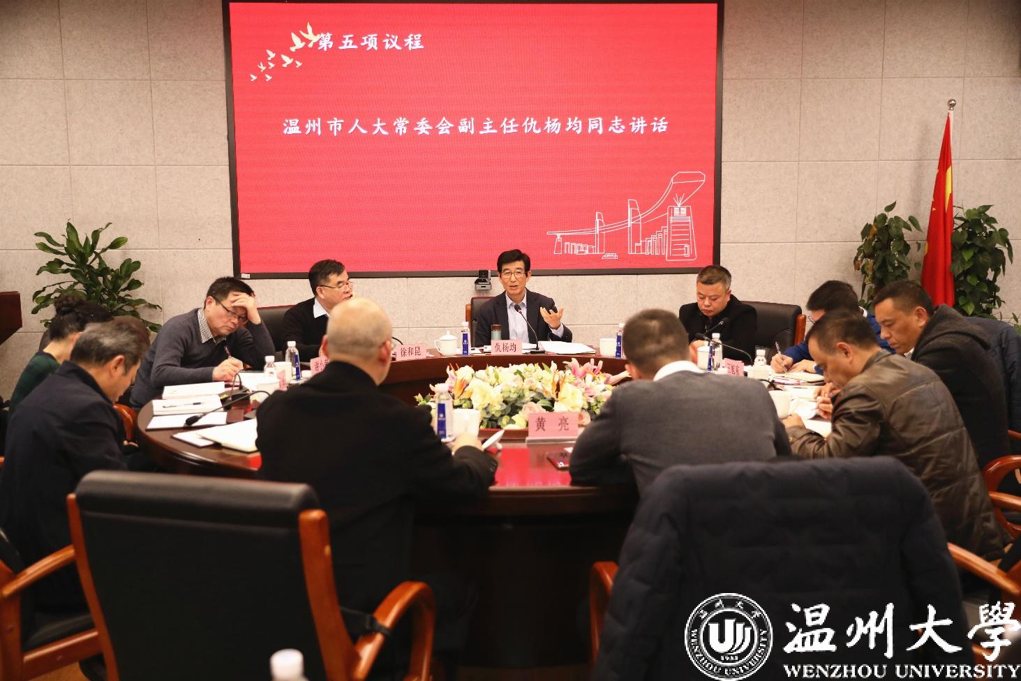 1月10日上午,温州市地方立法研究院工作会议在温州大学召开。市人大常委会副主任仇杨均、温州大学副校长徐和昆出席会议并讲话。