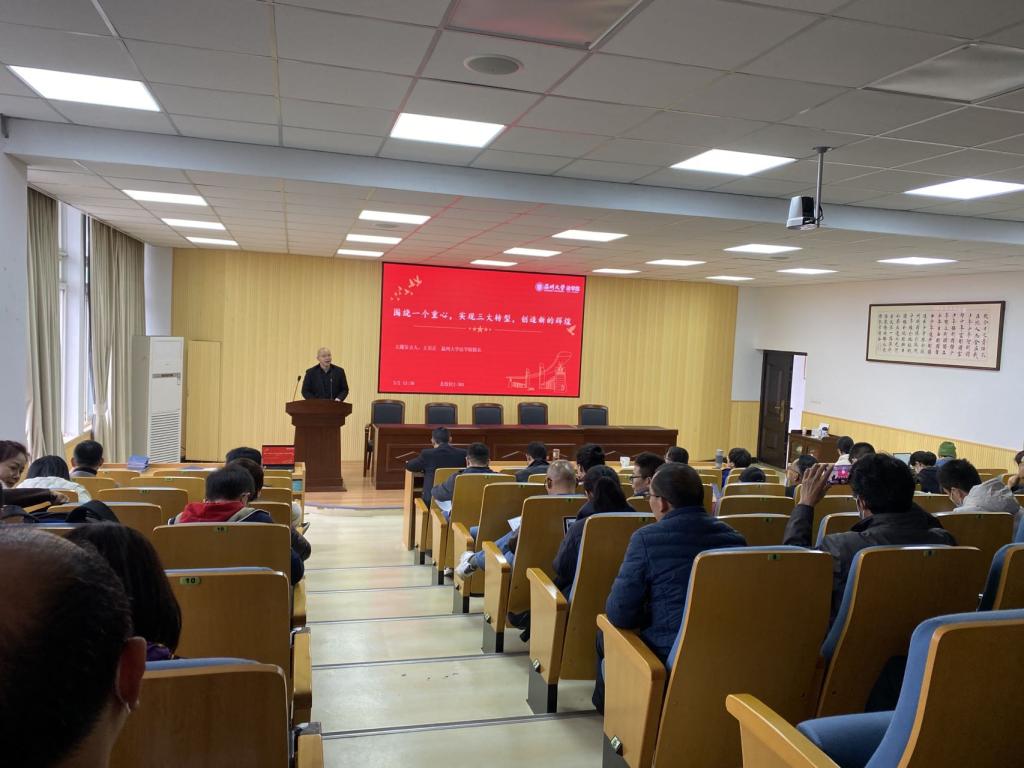 党委书记林钦以《凝心聚力,共创美好明天》为题作大会讲话。林钦书记带领学院全体教师深度学习了谢树华书记和赵敏校长在温州大学2022年春季新学期全体教职工大会上的讲话精神。他强调,学院教师应当将自身工作切合到学校的重点项目中,全面强化理论武装,加强师德师风建设,对标“锚定3456,奋进2022”的发展主线新要求,砥砺拼搏,继续奋斗,共同谱写新篇章。