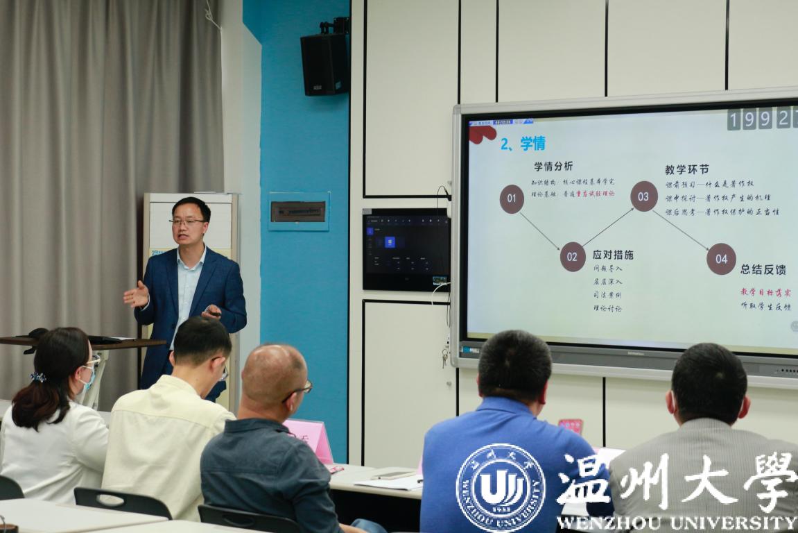 比赛结束后,周湖勇副院长对五位选手的精彩表现进行了总结性点评。他首先肯定了参赛青年教师的成长与进步,不仅还体现在教学基本功的夯实上,还体现在对课堂的整体把握上,也充分肯定了基层教学组织在新教师的助培上下了不少功夫。同时,他还指出,青年教师要不断学习,进一步提升教学能力,例如,如何拉近与学生们的距离,要如何丰富和控制语言和语速,如何进一步深化和拔高内容,备课中如何均衡重点和难点,以及课堂中如何充分利用好科技进行辅助性教学,仍是青年教师需要关注和思考的问题。