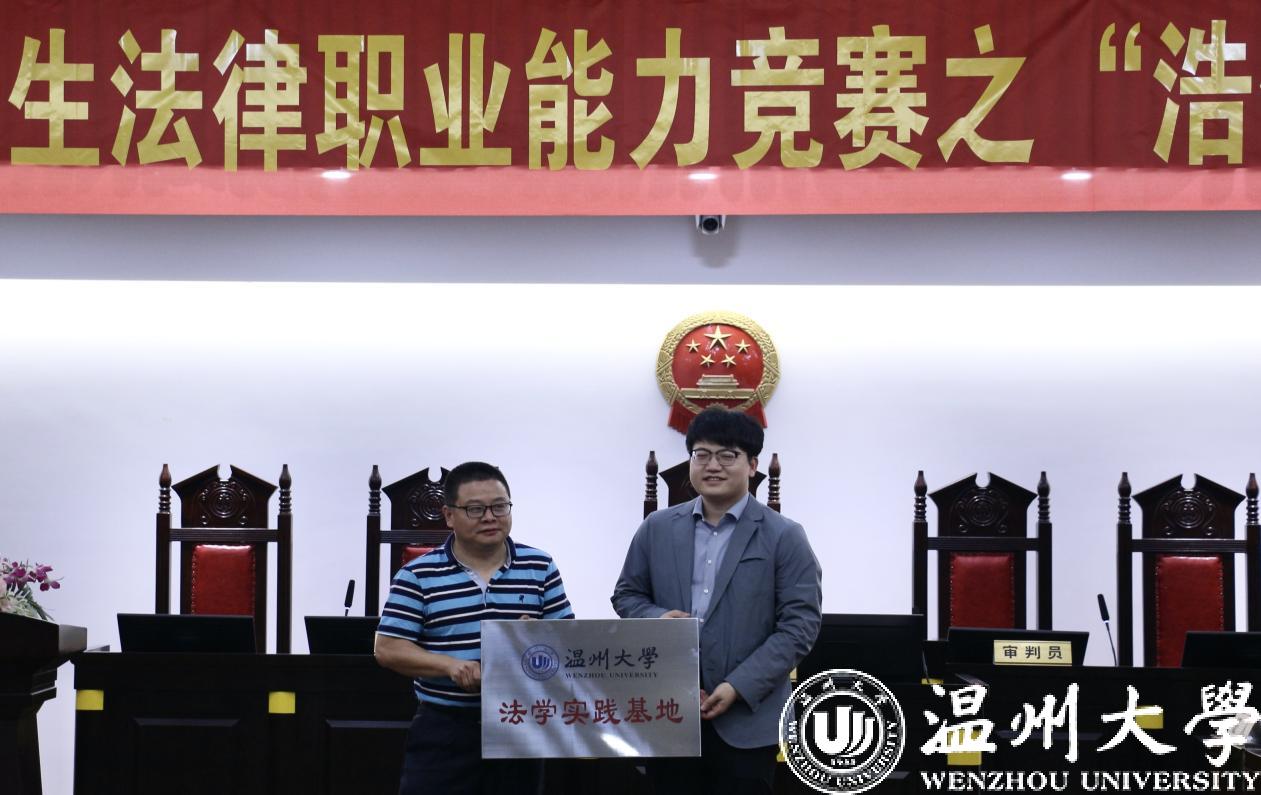 第一个阶段,举行禁漫天堂 和上海浩信(温州)律师事务所法学实践基地的签约仪式。上海浩信(温州)律师事务所主任章超凡律师从禁漫天堂 副院长周湖勇老师手中接过温州大学法学实践基地的授牌,随后,章主任、周副院长分别代表律所和禁漫天堂 就双方的实践合作发言。