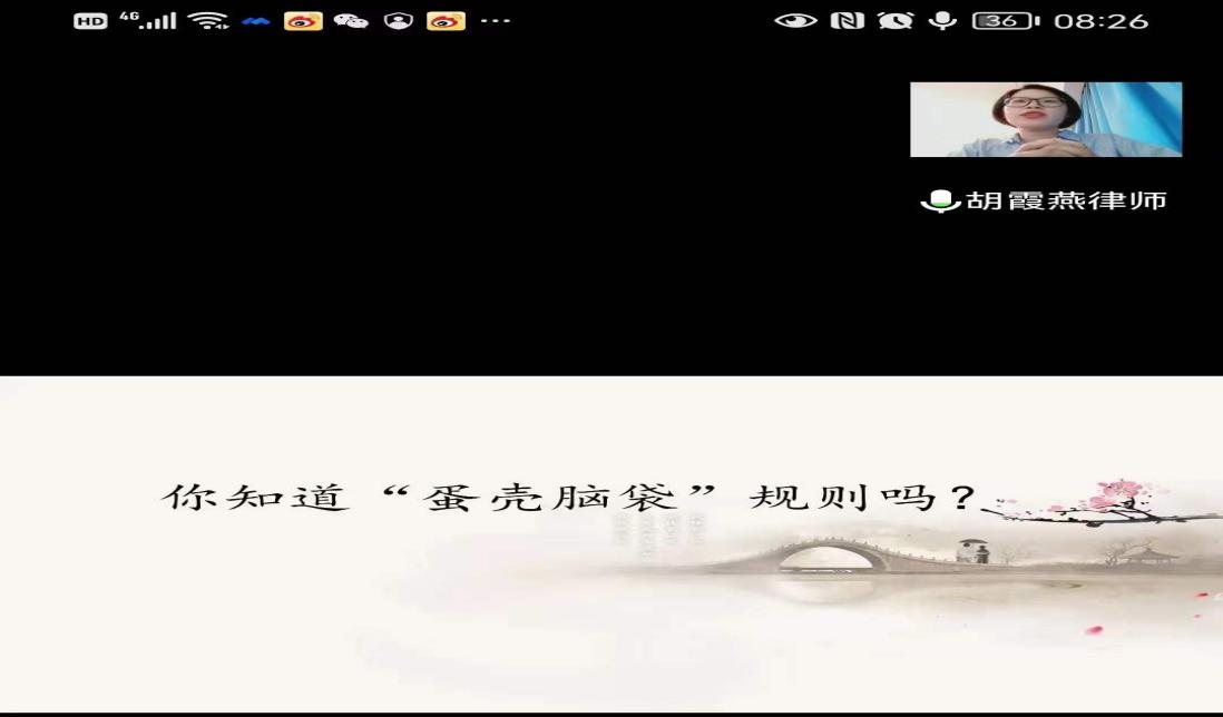 5月8日,北京德恒(温州)律师事务所婚姻家事与财富管理专业委员会副主任胡霞燕律师主讲《涉特殊体质侵权案件的实务探讨》。胡律师从“蛋壳脑袋”规则引入,以许某交通事故纠纷中法院对特殊体质侵权案件的认定标准、认定依据、损害参与度、裁判理由及依据等展开系统分析,并就如何把握特殊体质侵权案件的问题与学生进行了交流。