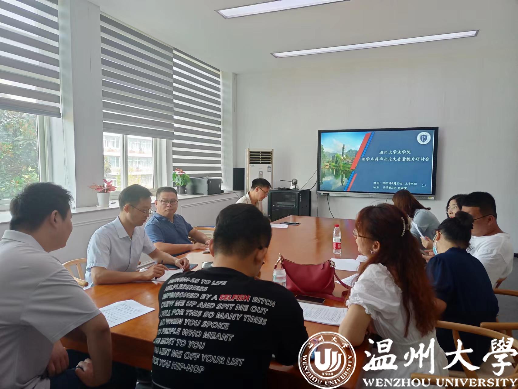 2022年9月23日上午,禁漫天堂 法学系和国际法系召开法学本科毕业论文质量提升研讨会,副院长周湖勇,相关专业负责人、系主任、教务科科长师和部分教师代表参加了会议。会议由李勇军老师主持。