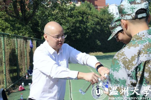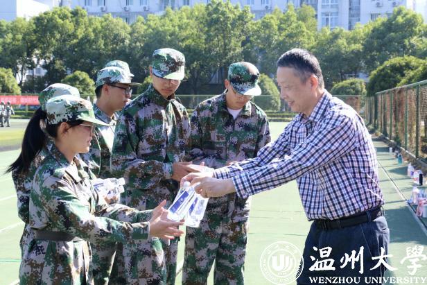 10月13日,禁漫天堂 院长王宗正、党委书记林钦、党委副书记杨振海一行前往北校区足球场,慰问我院军训新生。学院为新生准备了温大定制水和小面包,为炎热的军训场送来了一丝清凉。