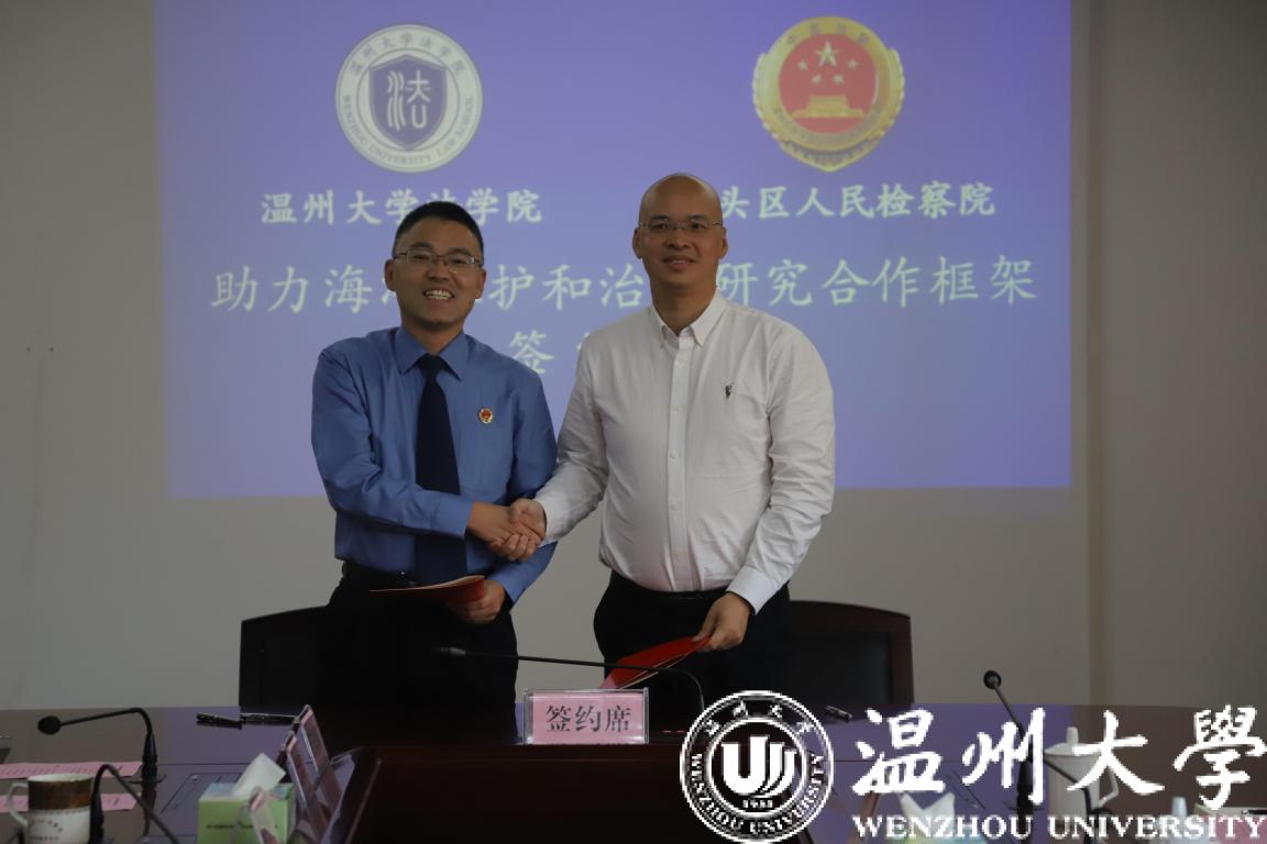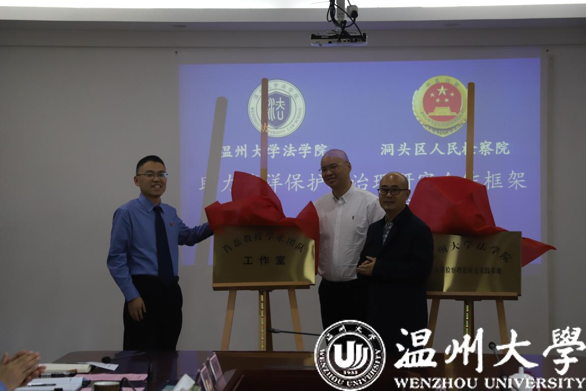 王恭顺检察长和王宗正院长代表检校双方签订《助力海洋保护和治理研究合作框架协议》,并为“海洋检察理论研究实践基地”“肖磊教授学术团队工作室”揭牌。