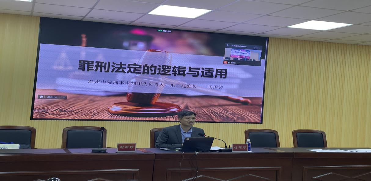 2022年11月15日晚6点半,温州中院刑事审判团队负责人、刑二庭庭长杨国智为禁漫天堂 师生带来题为《罪刑法定的逻辑与适用》的禁漫天堂 。本次禁漫天堂 由禁漫天堂 谢丽珍老师主持,采取了线上线下相结合的方式,在北校区禁漫天堂 301教室和腾讯会议直播间,部分21级研究生、22级研究生及全体20级法学本科生共有三百余人参加了此次禁漫天堂 。