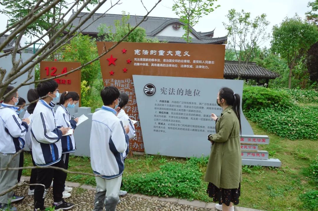 绍兴市柯桥区安昌中学团委组织部分团员代表和少先队员代表前往安昌街道法治小镇开展法治教育活动。团员代表庄严举起右手,面对法治小镇石碑标记的宪法法条庄严宣誓,重温入团誓言,承诺争做时代懂法新青年。