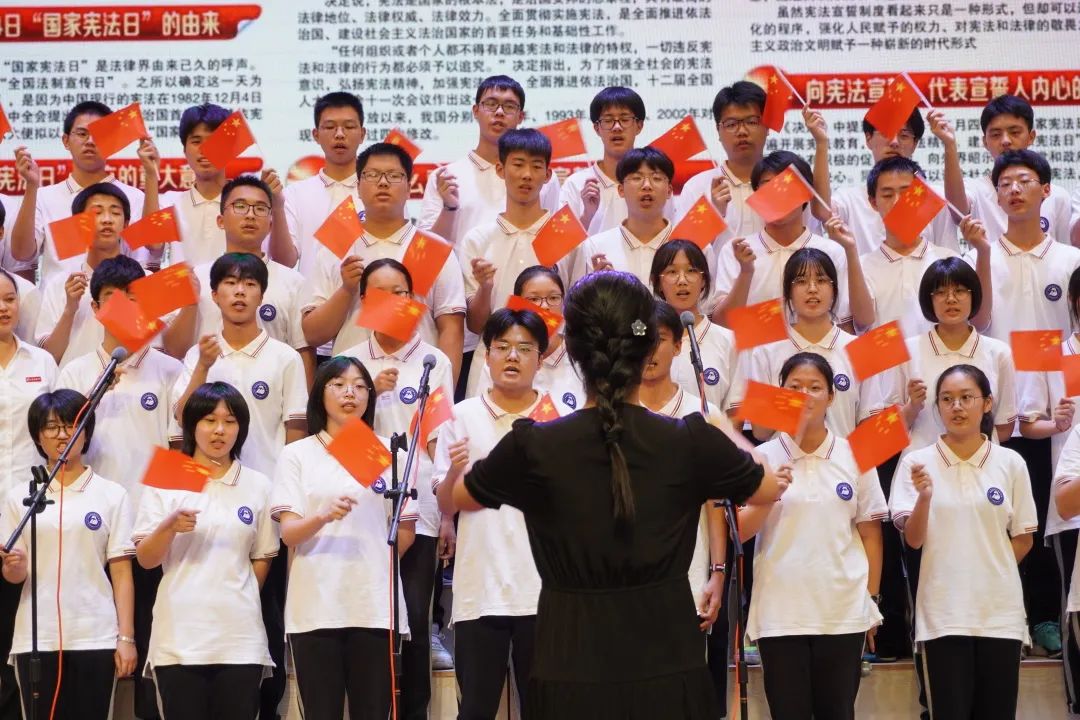 舟山市白泉高级中学利用音乐课组织全校学生学唱《宪法伴我成长》歌,并通过全校大合唱比赛展现学习成果。同学们用年轻的歌声,播种梦想,展现自立自强、奋进向上的风采。
