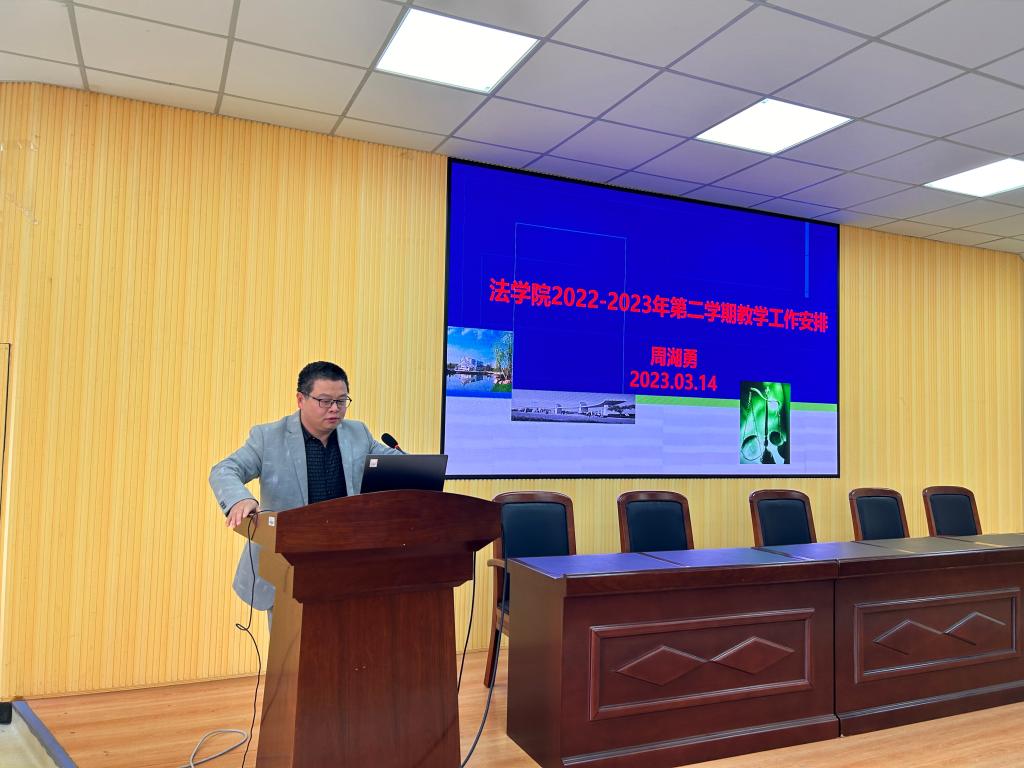 随后,周湖勇副院长作新学期教学工作安排。他指出,本年度学院教学工作主题为强化专业内涵建设,推进学院一流本科建设。接着对人才培养方案的修订、基层教学组织考核、教学资源建设、实践教学的改革等重点工作进行安排,提出学院要根据自身特色实现特色凝练、五育并举。