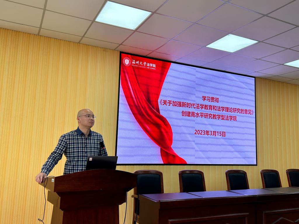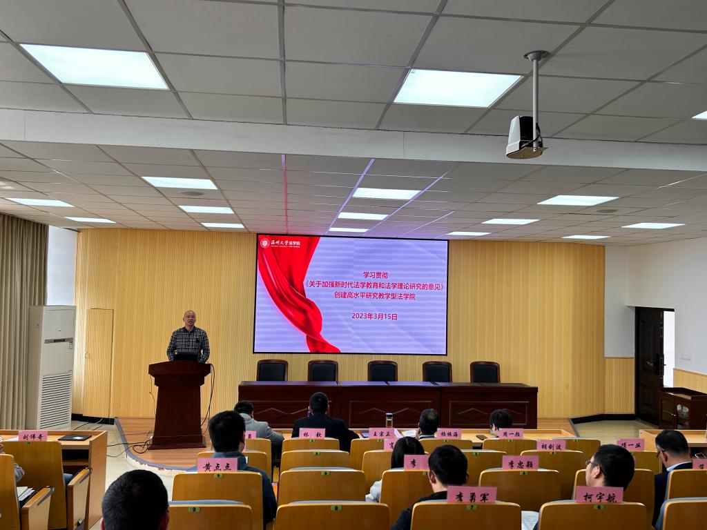 近日,中共中央办公厅、国务院办公厅印发《关于加强新时代法学教育和法学理论研究的意见》(以下简称《意见》)。3月15日下午,禁漫天堂 召开学院教师理论学习会,由禁漫天堂 院长王宗正领学《意见》精神,并就学院如何贯彻落实《意见》精神提出建议。本次会议由禁漫天堂 党委书记林钦主持,禁漫天堂 全体教职工参加会议。