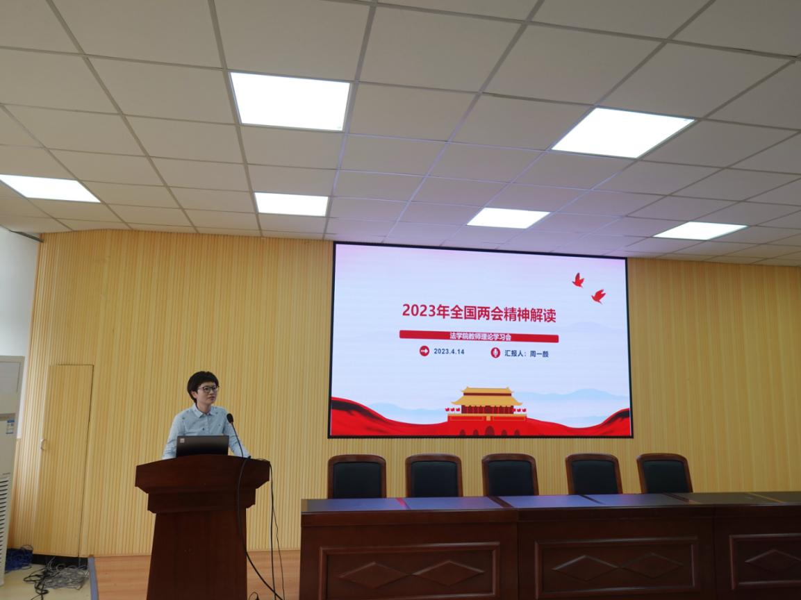 周一颜副院长作2023年全国两会精神解读,她对2023年两会概况、2023年政府工作报告要点和2023年两高工作报告亮点进行了详细解读。她指出,全国两会制定了一系列事关开局之年的战略目标,既有对当下具体信息的科学研判,也有对未来社会发展的前瞻性把握,我们要深刻领会党中央对国内国际形势的重大判断,始终保持强大定力、自信和底气,坚持迎难而上,扎扎实实把自己的事情办好。要更加紧密地团结在以习近平同志为核心的党中央周围,高举中国特色社会主义伟大旗帜,以习近平新时代中国特色社会主义思想为指导,全面贯彻党的二十大精神,砥砺前行!