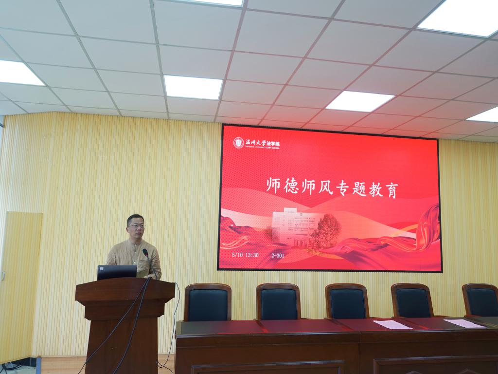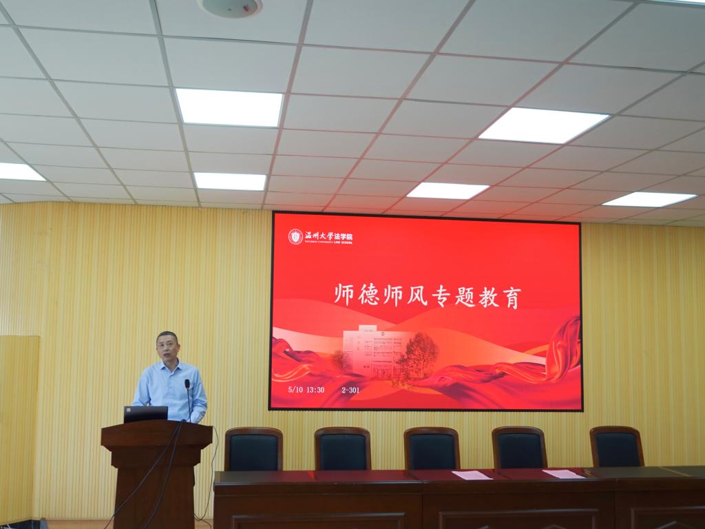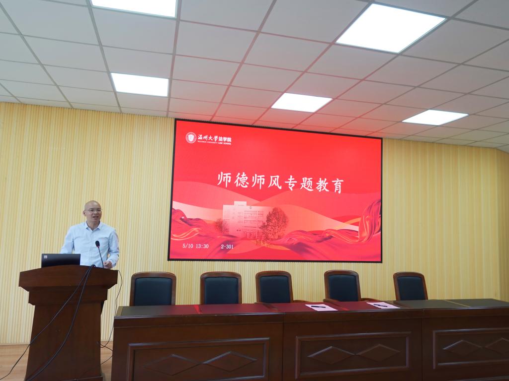 林钦从目标任务、整治原则、整治重点、总体安排四个方面为全体教师解读了《温州大学师德师风问题专项整治工作实施方案》,并重点就政治纪律、廉洁从教、生活纪律、学生权益、法律法规、学术诚信、失管失责七个整治重点进行详细说明,提醒教师要以赤诚之心、奉献之心、仁爱之心投身教育事业,争做“四有”“六模范”好老师。