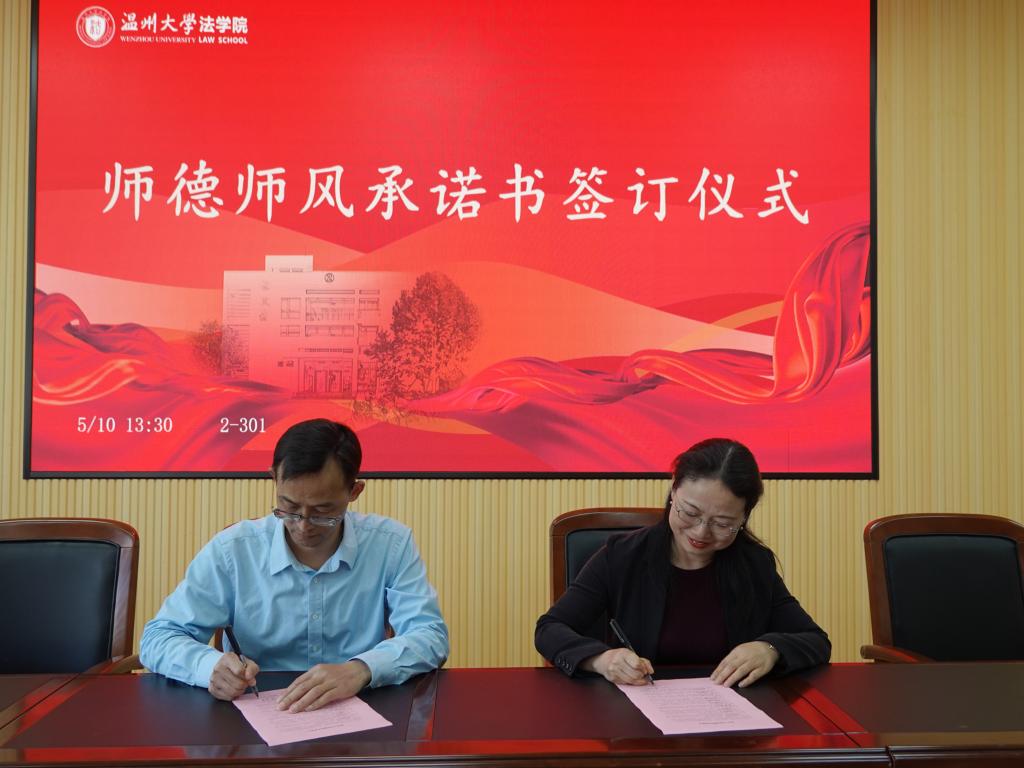 学院教师代表签订《温州大学师德师风承诺书》。