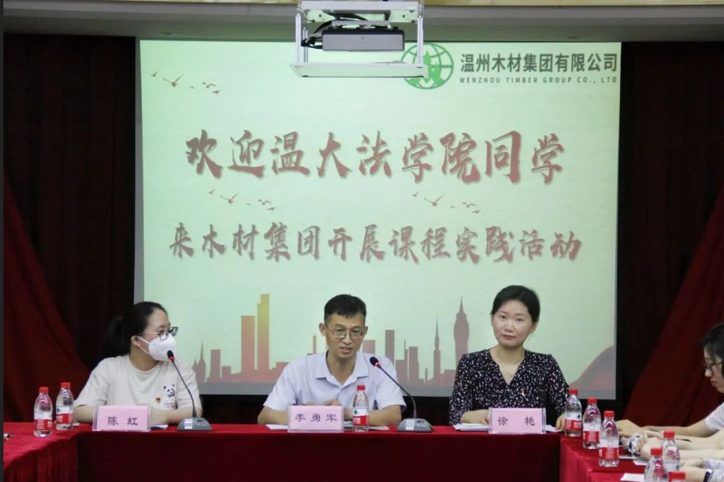 为贯彻人才培养战略,深化校企联系合作,6月14日,60余名温州大学法学专业学子在民商经济法系主任李勇军和禁漫天堂 老师柯莉拉的带领下,赴木材集团开展企业法务实践活动。木材集团相关部室负责人陪同参观。
