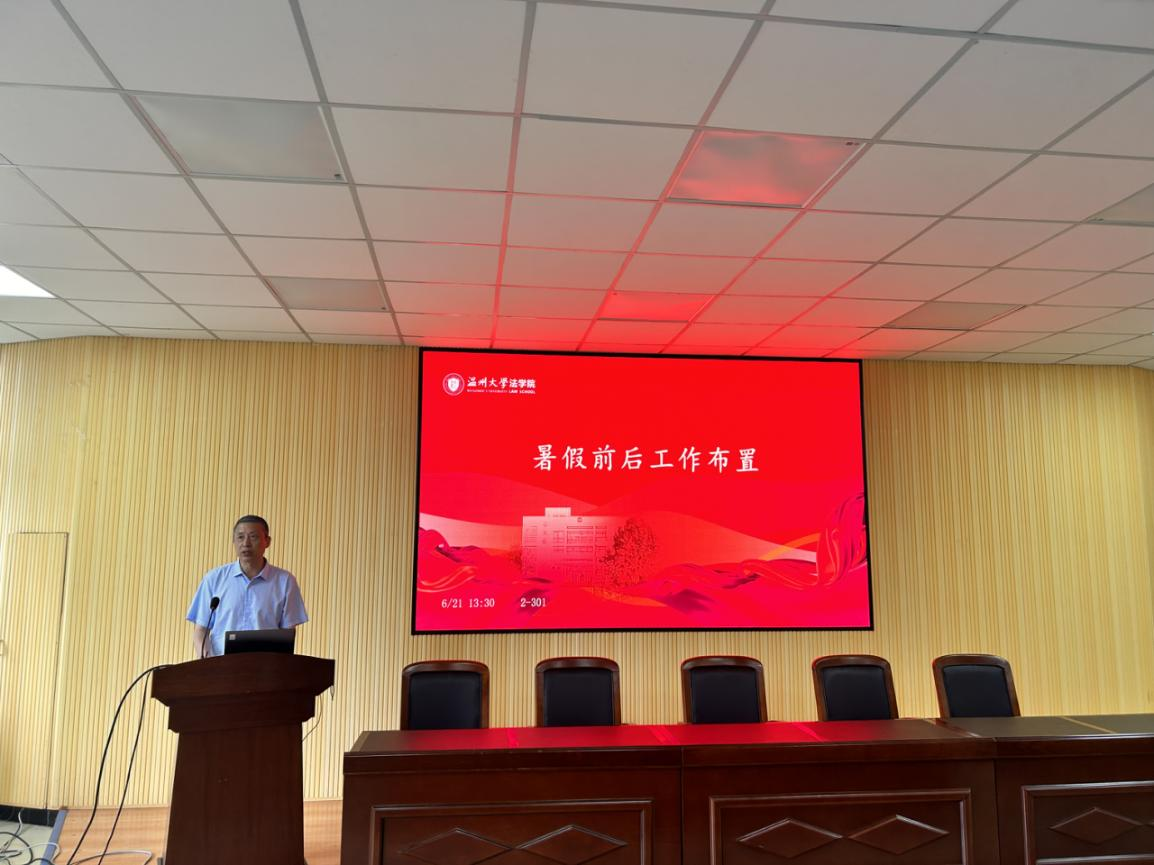 林钦书记做暑假前后工作布置。他对毕业生离校、教师监考阅卷、学生安全教育、暑期学生留校、实验室假期使用管理等学期末工作和暑期值班、暑期培训、本科招生宣传、就业指导等暑假期间工作,及新学期开学工作做了详细布置。