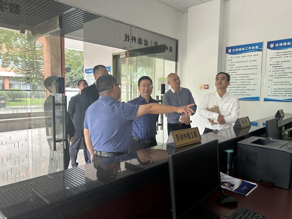 会后,王国银调研参观了学院办公区、一带一路国际商事仲裁院和模拟法庭。