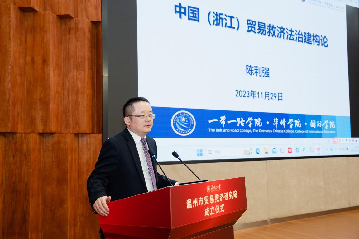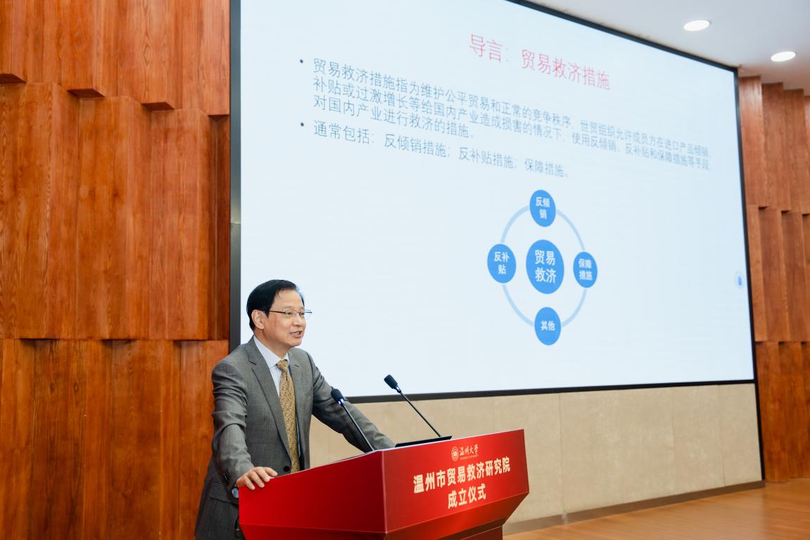 为应对日益复杂的贸易摩擦,有效开展贸易救济,11月29日,全国首个地市级贸易救济研究机构——温州市贸易救济研究院在温州大学成立。成立仪式在温州大学岩松堂雁山厅隆重举行。温州市贸易救济研究院由温州大学和温州市商务局合作共建。