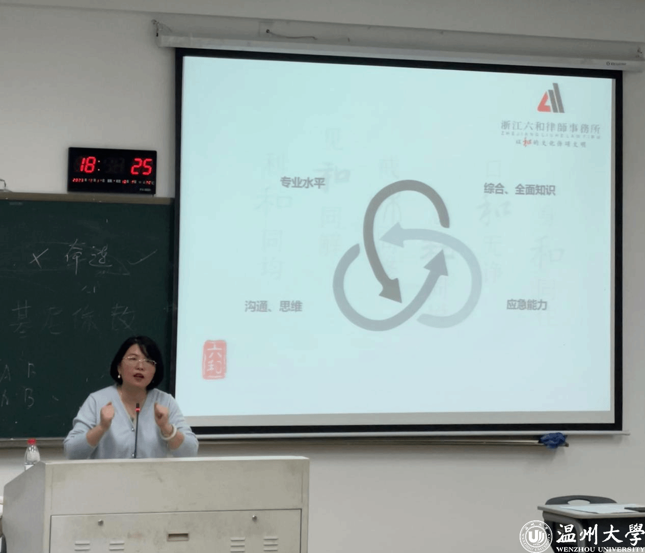 2023年12月11日,鹿城区政协委员、浙江六合(温州)律师事务所林晓露律师应邀为禁漫天堂 企业法务理论课和企业法务综合实践课的同学讲授法律实务,禁漫天堂 主题“法律顾问服务”。禁漫天堂 开始前,周湖勇教授强调企业法务课程对法学生的重要性及禁漫天堂 已经系统开展该项课程十余年,课程设置已较为全面完善,走在前列。