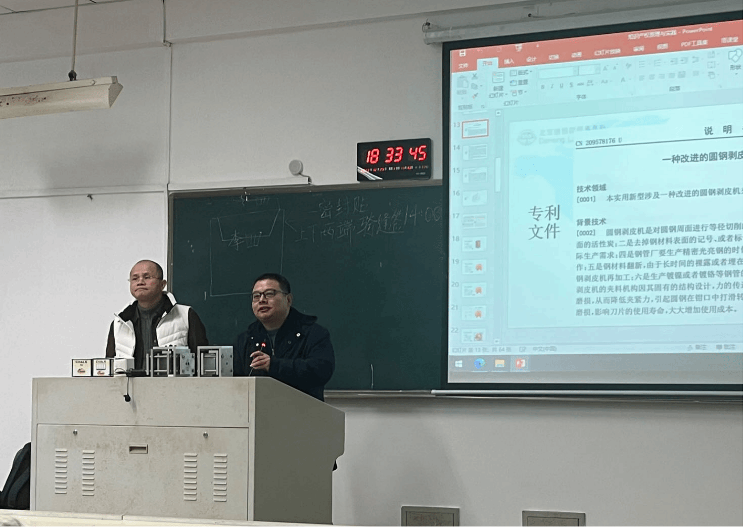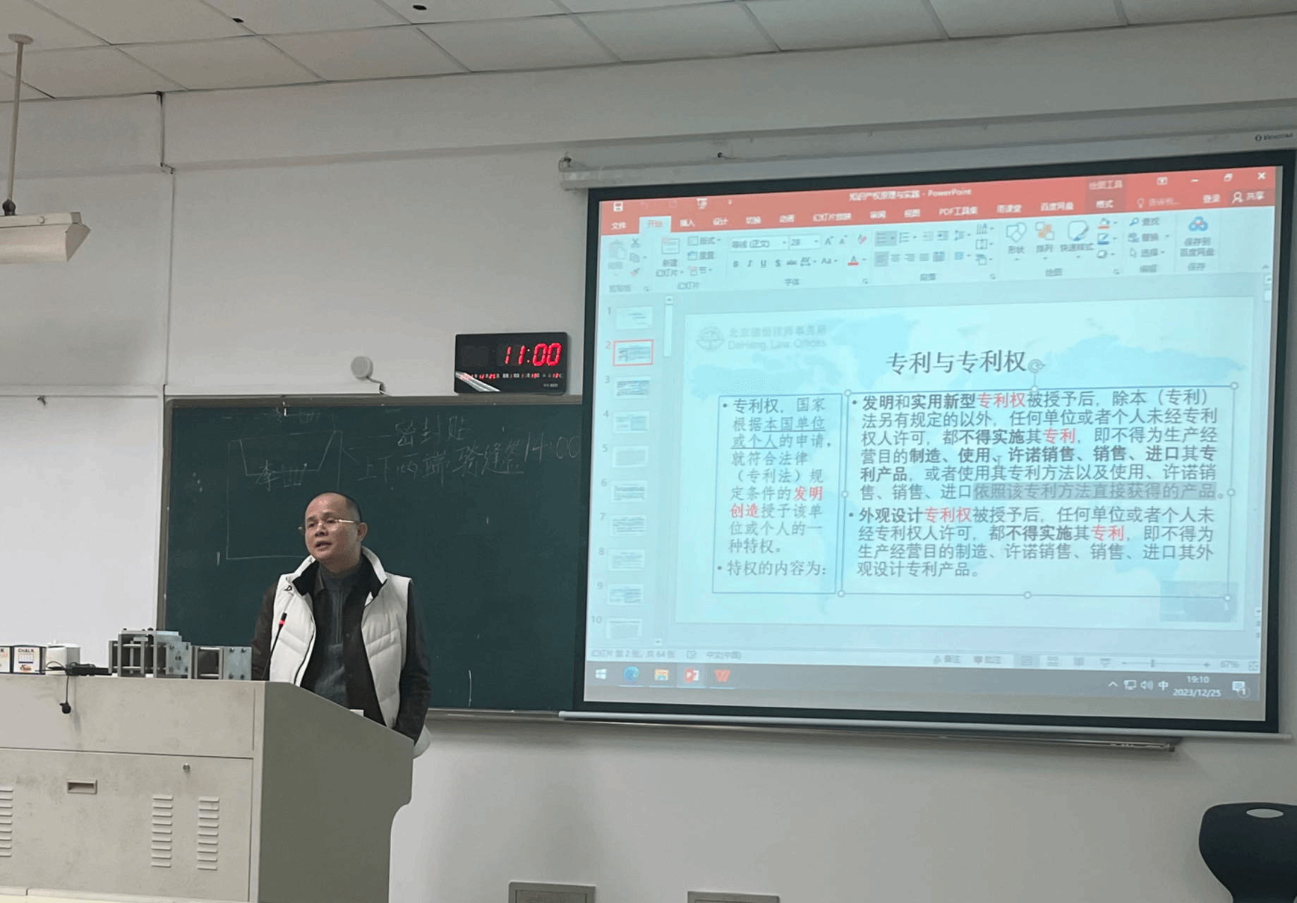12月25日晚,北京德恒(温州)律师事务所合伙人石圣科博士应邀莅临禁漫天堂 ,在302教室为师生作题为《专利与专利权》的禁漫天堂 ,包括行政管理、法律等专业在内的100余位本科生、研究生到场参加。禁漫天堂 周湖勇教授主持禁漫天堂 ,热烈欢迎石博士的到来。