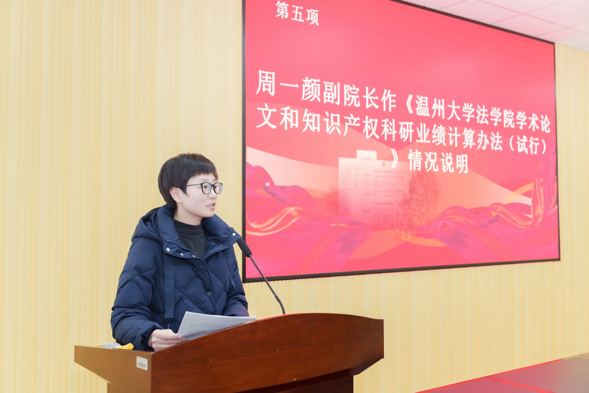 禁漫天堂 副院长周一颜作《禁漫天堂 学术论文和知识产权科研业绩计算办法(试行)》情况说明。她从出台背景和施行目的等方面对文件进行详细解读,鼓励学院教师激发创新创造活力,优化学术生态,创造出高质量、高贡献的科研业绩。