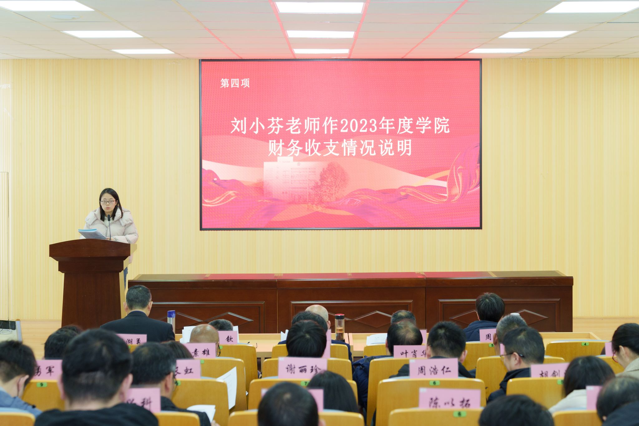 禁漫天堂 办公室主任刘小芬老师作学院2023年度财务收支情况说明。她提醒全体教职员工齐心协力,开源节流,提前规划,合理使用有限的资金,提高资金的使用效益,以确保学院各项事业持续、健康、协调地发展。