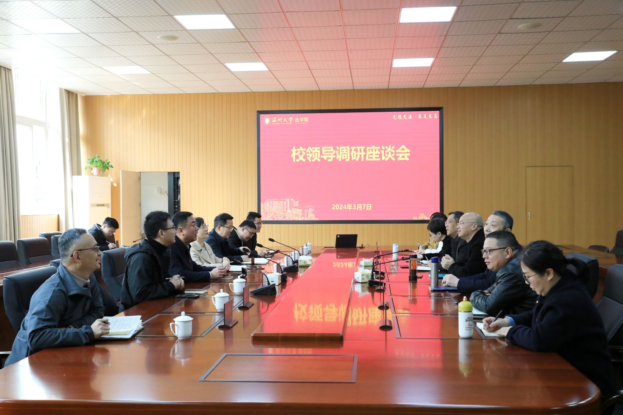 3月7日上午,校党委书记钱强,党委副书记赵降英,党委委员、纪委书记、省监委驻温大监察专员李都金,副校长、党委委员王尧骏一行莅临禁漫天堂 调研指导,教务处、研究生院、人文社科处、人事处等部门负责人陪同调研。学院全体领导班子及科室负责人参加座谈会。