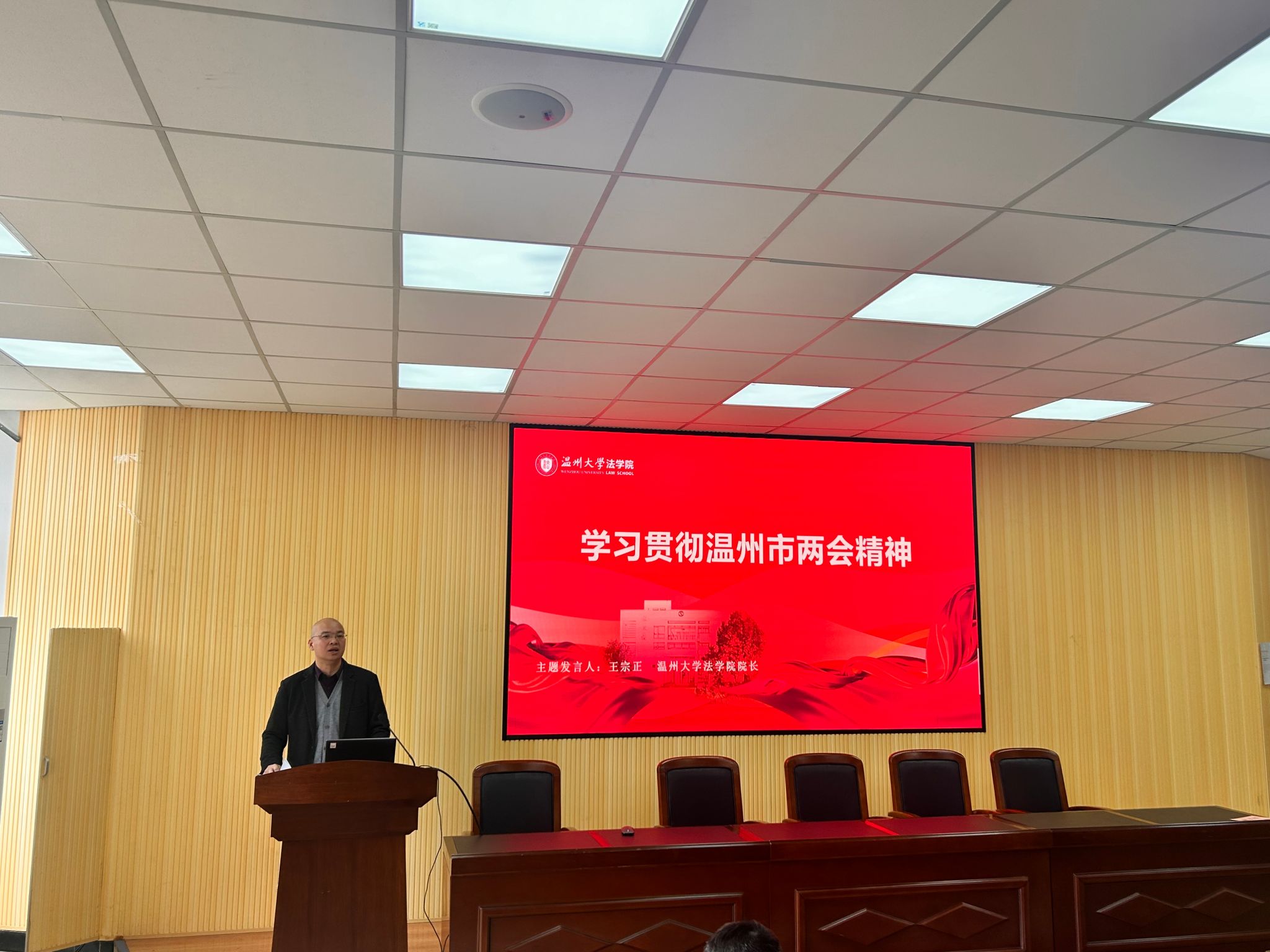 会上,禁漫天堂 院长王宗正带领全体教师学习了温州市两会精神。他指出,要充分发挥立法研究院专家库和基层立法联系点的作用,发挥地方禁漫天堂 作用,做好地方服务,贯彻落实温州市两会精神和温州大学2024春季新学期教职工大会上的校领导讲话精神。