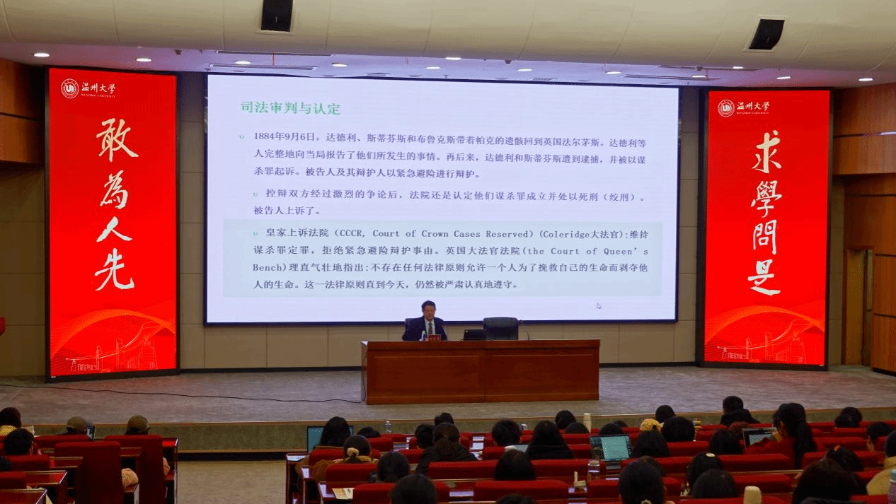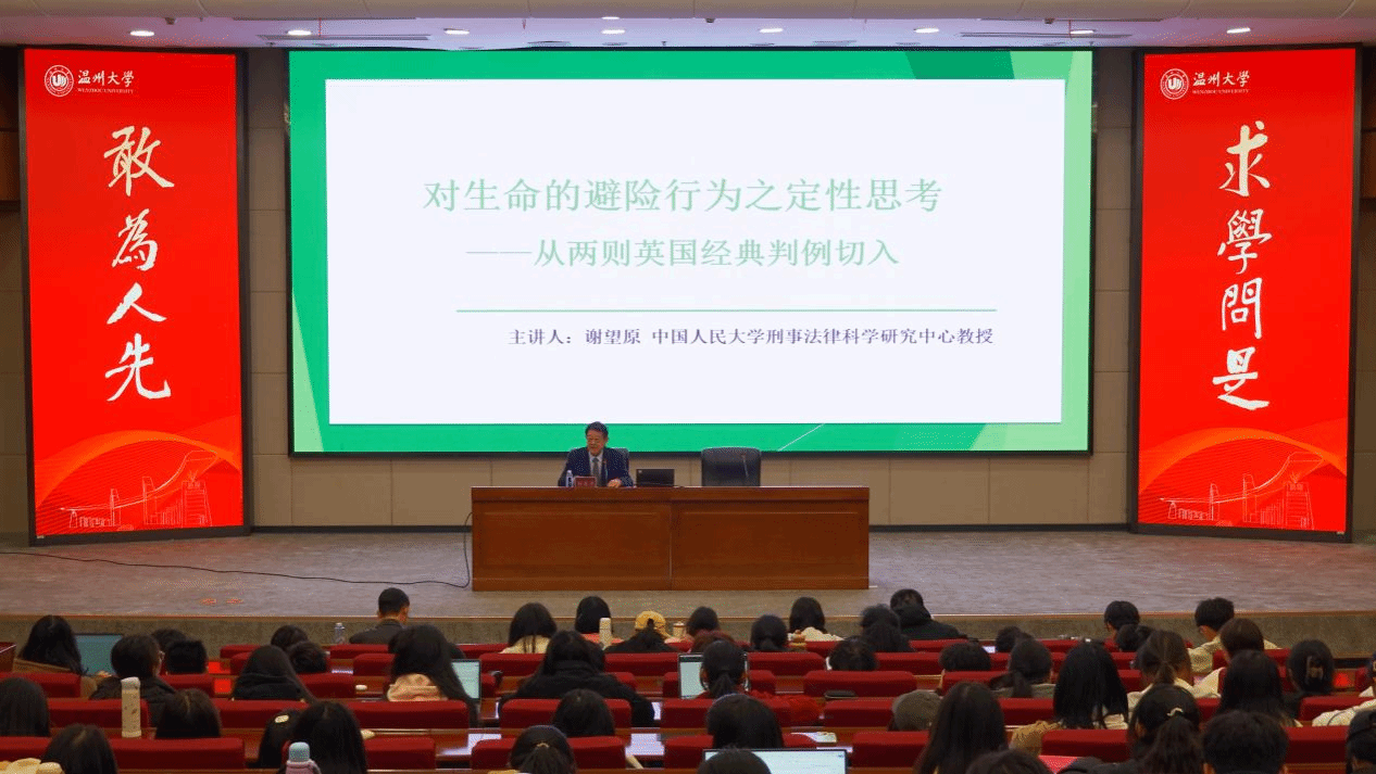 2024年3月18日晚,中国人民大学禁漫天堂 教授、博士生导师谢望原教授应邀做客罗山讲堂。本次罗山讲堂由温州大学主办,禁漫天堂 、温州大学图书馆承办,主题为“对生命的避险行为之定性思考”,禁漫天堂 师生共计两百余人到场学习。
