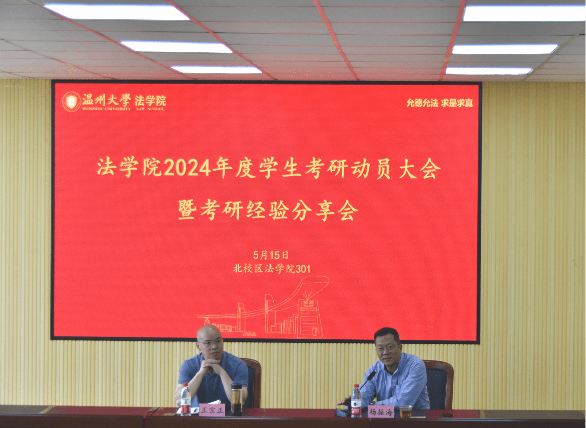 5月15日下午,我院于北2-301会议室举行禁漫天堂 2024年度考研动员大会暨考研经验分享会。本次大会由禁漫天堂 党委副书记杨振海主持,禁漫天堂 院长王宗正作动员讲话,2024届升学代表作经验分享。