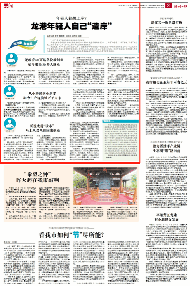 龙港,改革名城,中国首个“镇改市”,今年即将步入五周岁。自龙港市诞生之日起,温州日报持续关注、报道这个极具“少年感”城市的每一步成长和变革。在此过程中,我们发现,伴随着新型城镇化改革持续推进,龙港传统产业不断赋能升级、新质生产力接连引入、文化创新基因涌动勃发……良好的产业、文化生态和营商环境,正吸引着大量年轻人“用脚投票”来到龙港创业、就业,让城市发展有了新引擎新动能。