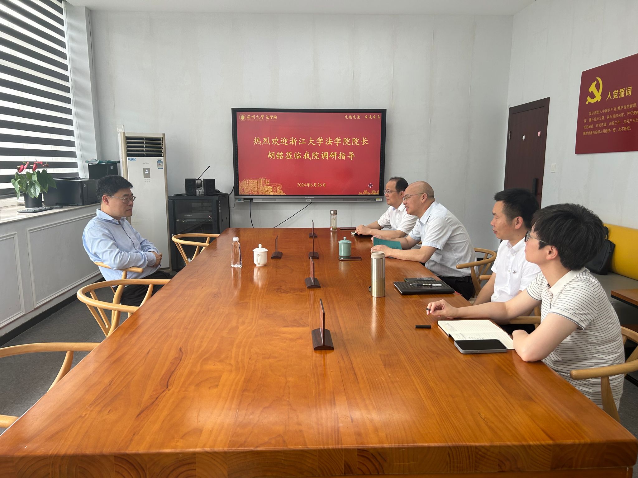 6月26日上午,浙江大学光华禁漫天堂 院长兼党委副书记胡铭教授莅临我院调研指导,院长王宗正、党委书记周敬业、副院长叶肖华和副院长周一颜出席座谈会。