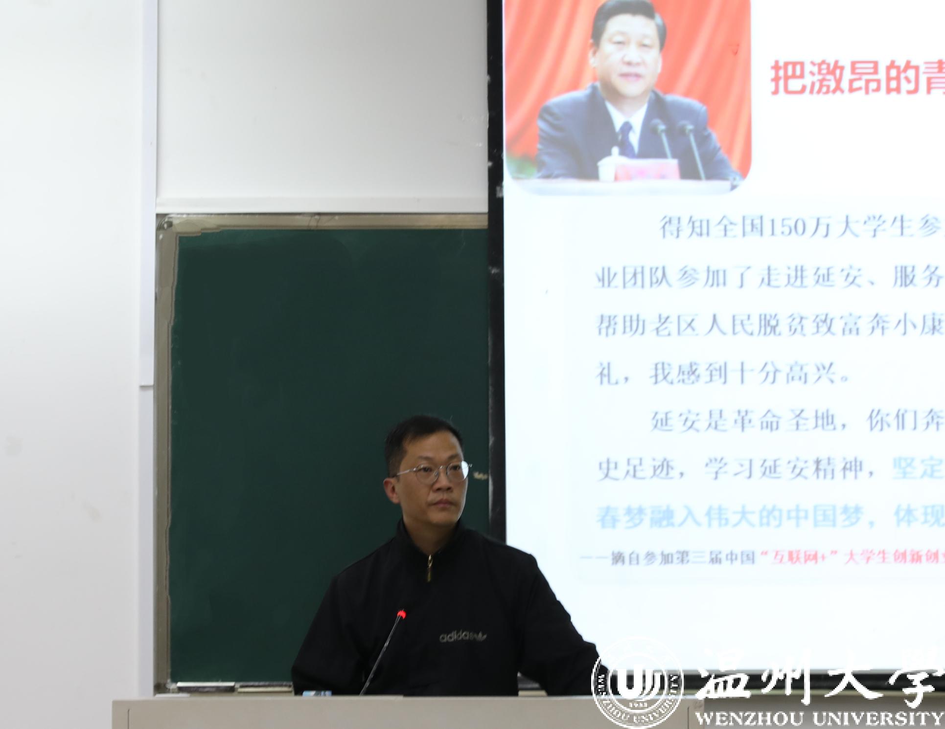 最后,老师为我们展示了由温大马克思主义学院导演的“思政课战‘疫’小课堂”, 激励同学们让理想之花在行动中绽放,一同致敬“高温青年”,生逢其时则需肩负重任,鼓励同学们毕业后到人民需要的地方去。老师在雷动的掌声中祝愿全体同学:“学有所得,学有所乐!”。