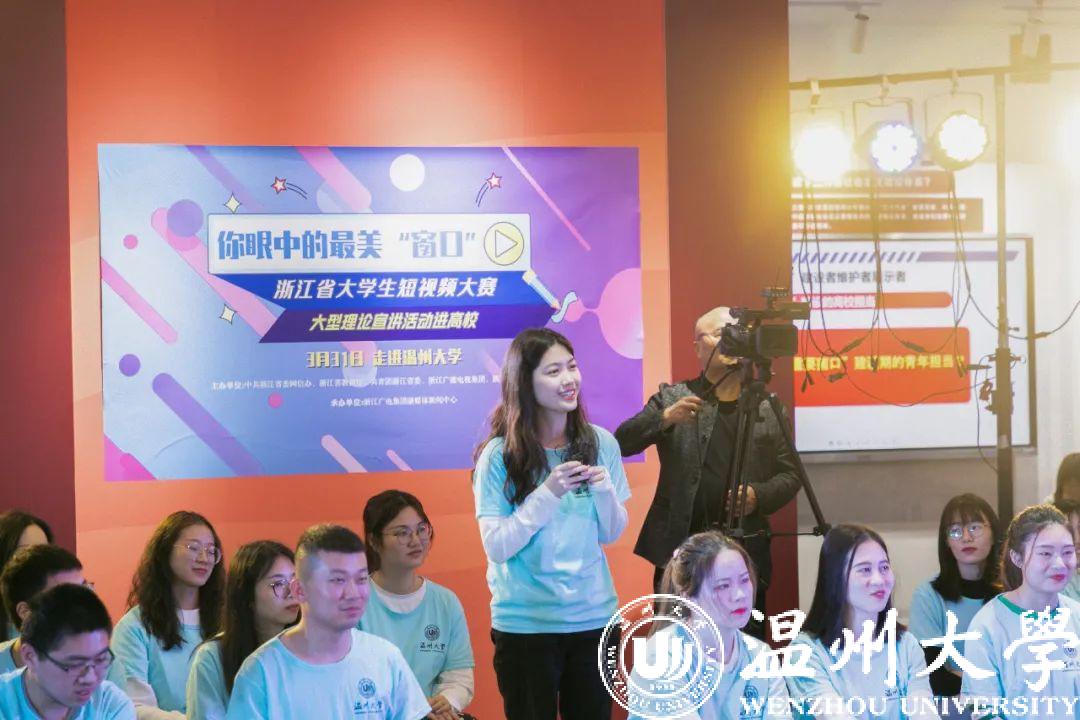 3月31日下午,“你眼中的最美‘窗口’”浙江省大学生短视频大赛第二场大型理论宣讲活动在温州大学举行,禁漫天堂 组织学生代表前往现场观看,其他班级学生集中观看现场直播。