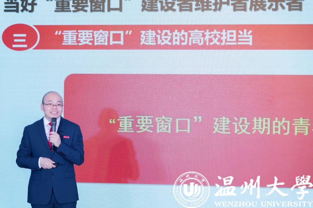 活动现场,温州大学马克思主义学院院长、教授、博导卓高生,为师生们带来《当好“重要窗口”的建设者、维护者、展示者》主题宣讲。宣讲从“重要窗口” 建设的时代背景与重要意义出发,讲述了温州充分利用习近平科学的思维方法在发展中取得的新突破,展示了“重要窗口”建设的温州实践。