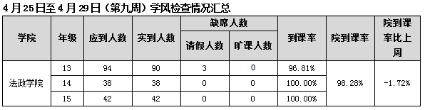学生处学风检查法政学院情况(6.21更新)