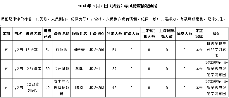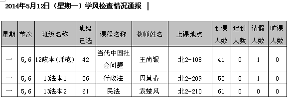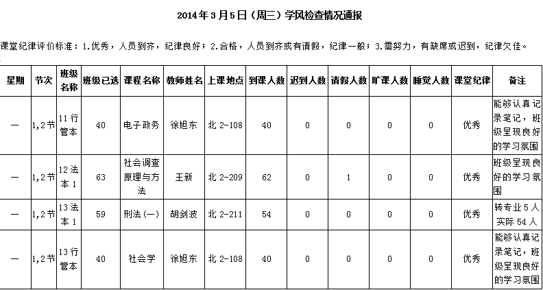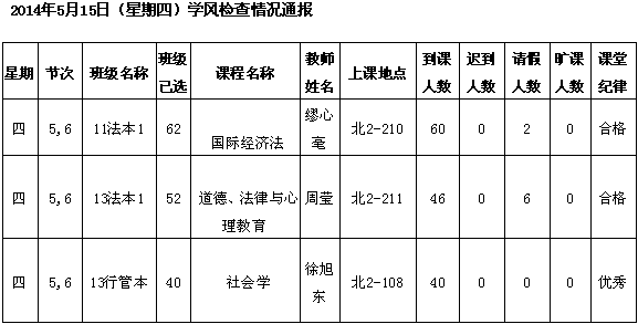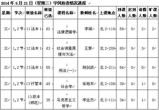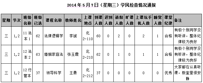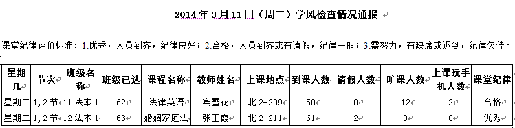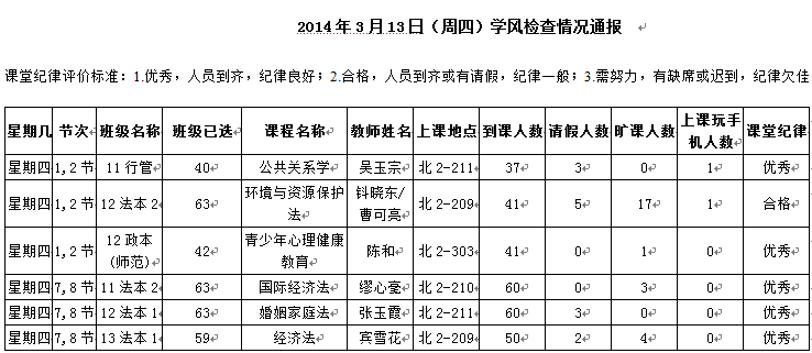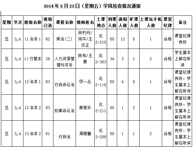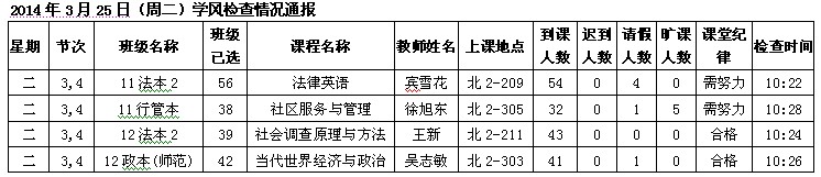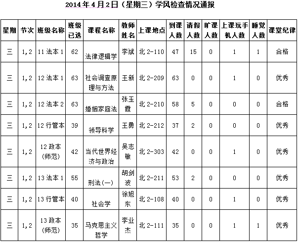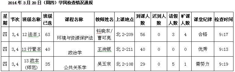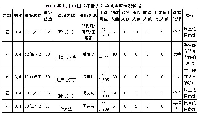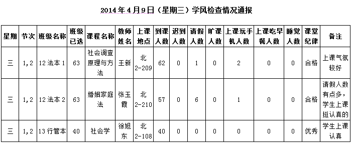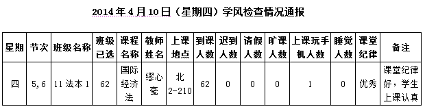 2014年4月22日(星期二)学风检查情况通报