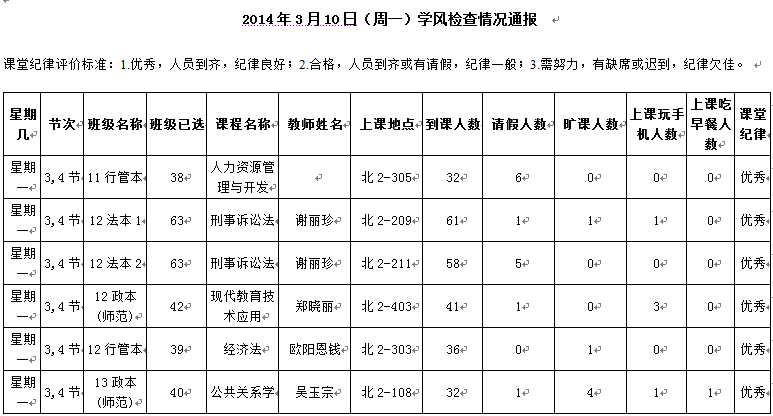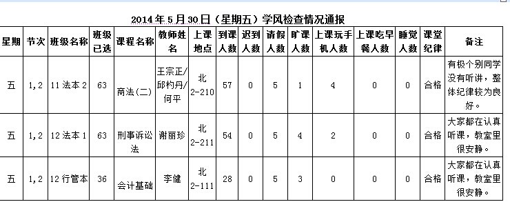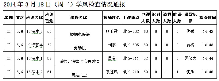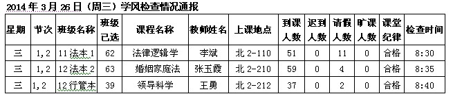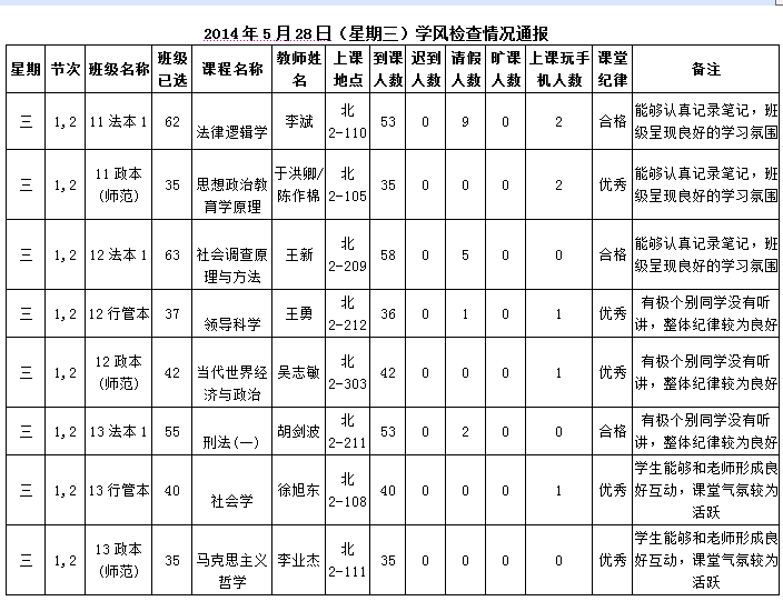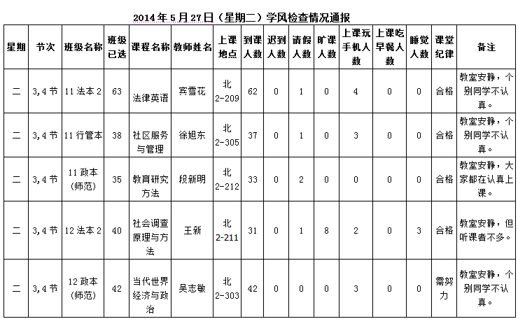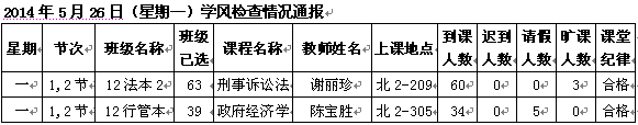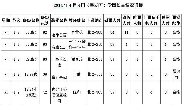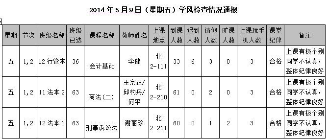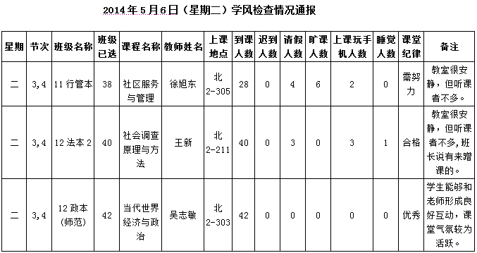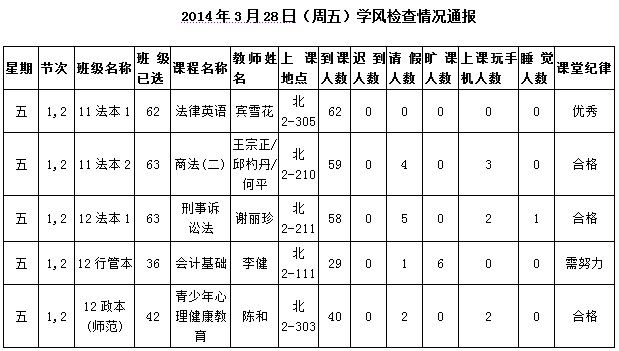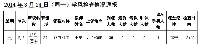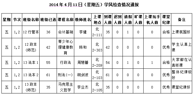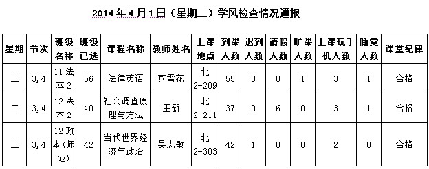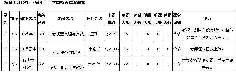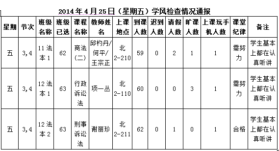 2014年4月28日(星期一)学风检查情况通报
